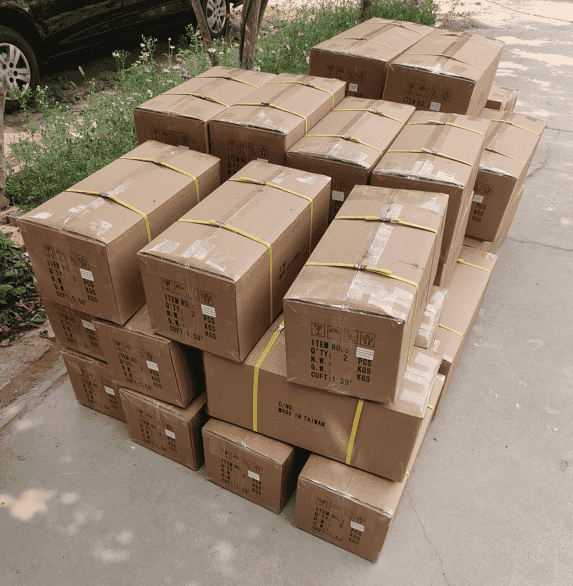 A batch of saxophones is waiting to be palletized, ready for shipment to South Korea.