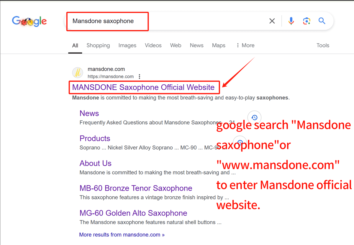 Google search "Mansdone saxophone" or enter Mansdone official website "www.mansdone.com".