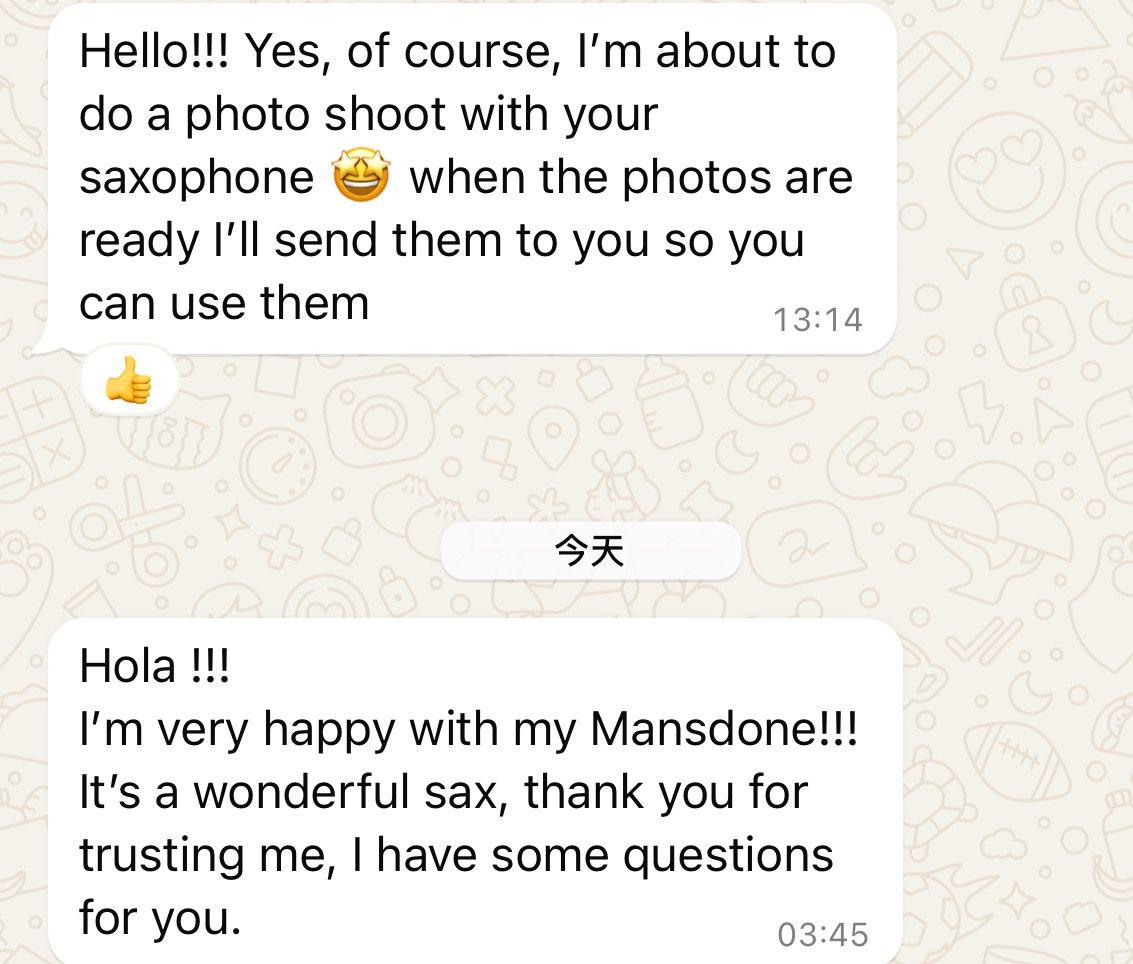 Hello!!! Yes, of course, I'm about to do a photo shoot with your saxophone when the photos are ready l'll send them to you so you can use them. Hola !!! I'm very happy with my Mansdone!!! It's a wonderful sax, thank you for trusting me.